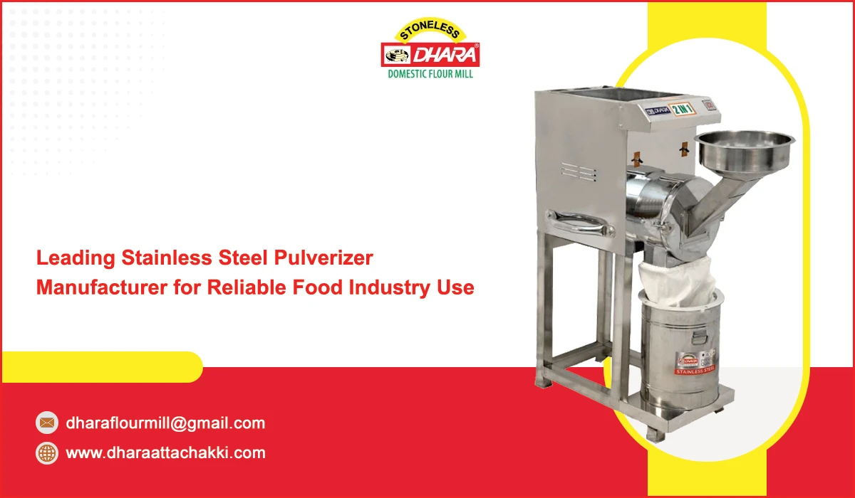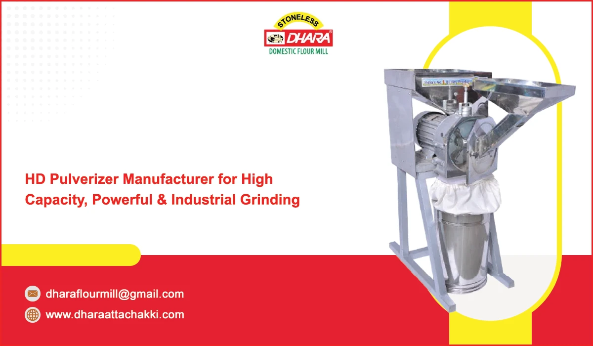 Dhara Flourmill Company brings you a wide range of high-quality food production machinery designed to meet the need of industries, hotels, restaurants, and food processing businesses. With years of experience and advanced technology, Dhara ensures that every machine is built with precision, strength, and durability. Our product line includes domestic and industrial flourmills, pulverizers, dough kneaders, gravy machines, vegetable cutting machines, spice grinders, oil expellers, and more – all manufactured with stainless steel and advanced engineering standard.